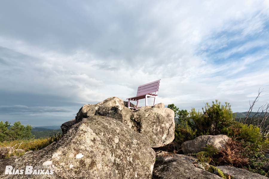 Cuando uno alcanza la cima del monte de A Caritaina resulta inevitable pensar en el cercano mirador del Campo da Rata, en la parroquia redondelana de Cedeira. Otro banco más —yo reconozco que ya he perdido la cuenta— que aparece repentinamente en un punto elevado del litoral gallego y se une a la larga lista de “los mejores bancos del mundo”. Suma y sigue.